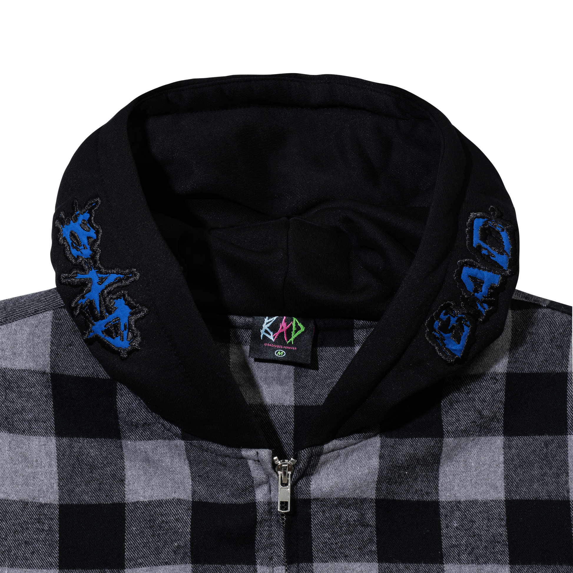 MOONLIGHT EMBROIDERED FLANNEL HOODIE BLACK/BLUE