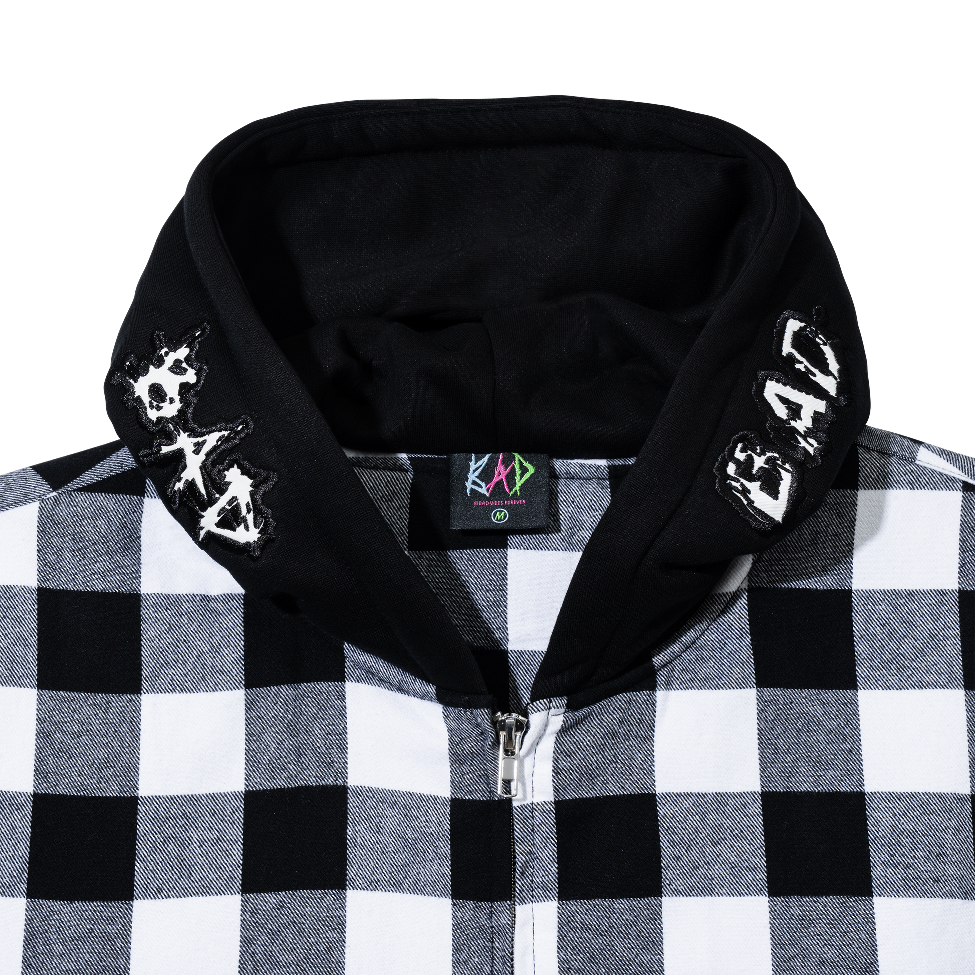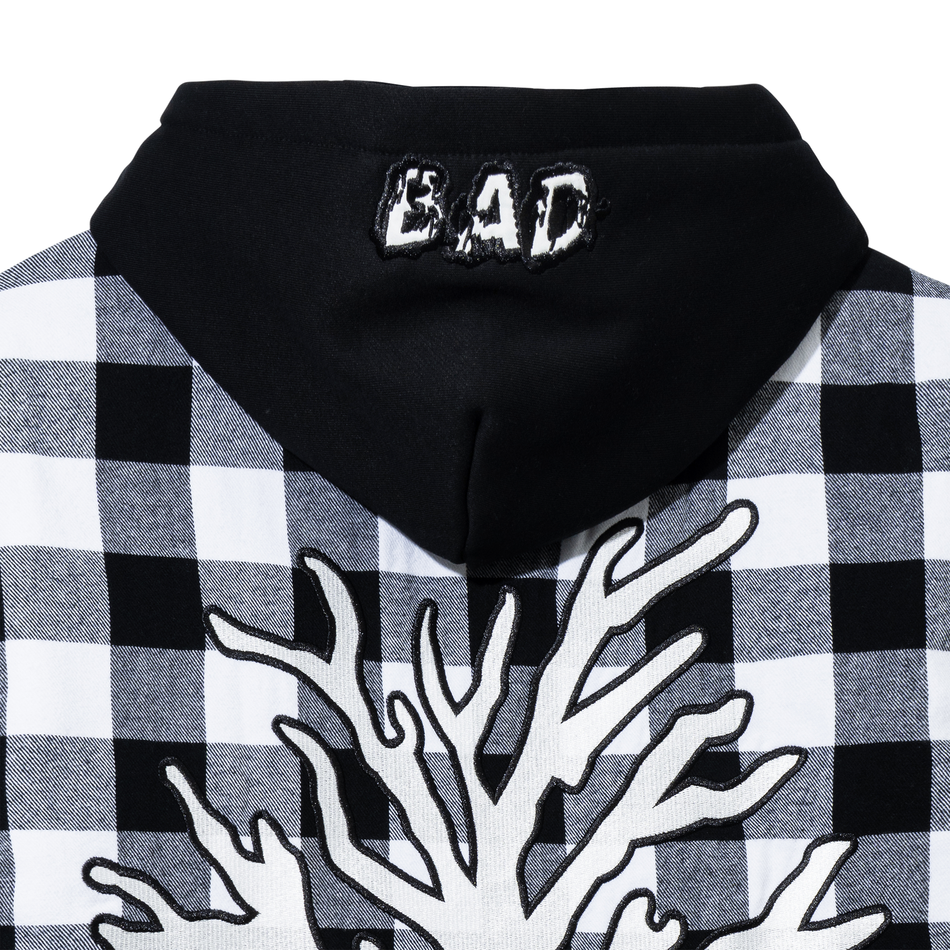 MOONLIGHT EMBROIDERED FLANNEL HOODIE BLACK/WHITE
