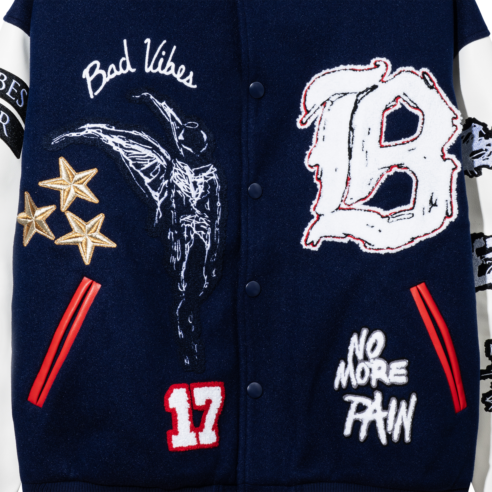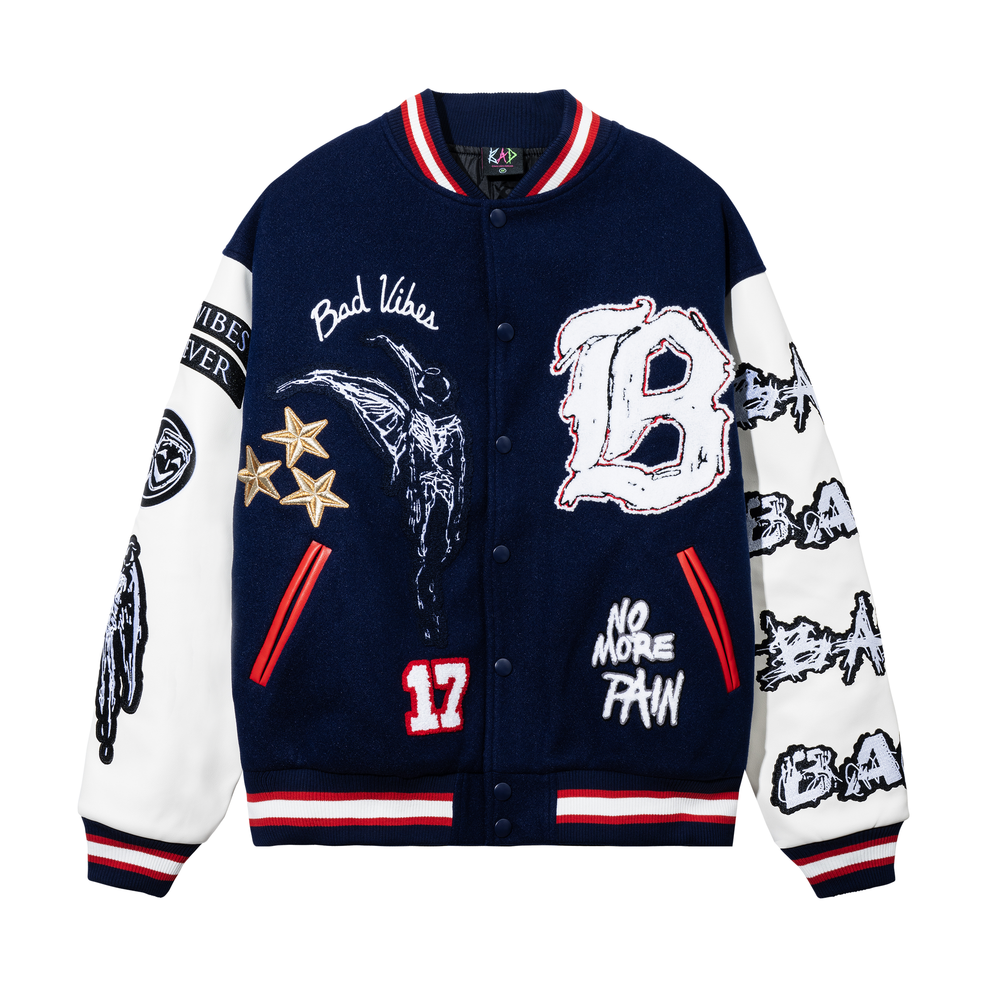 NO MORE PAIN LETTERMAN JACKET NAVY/WHITE