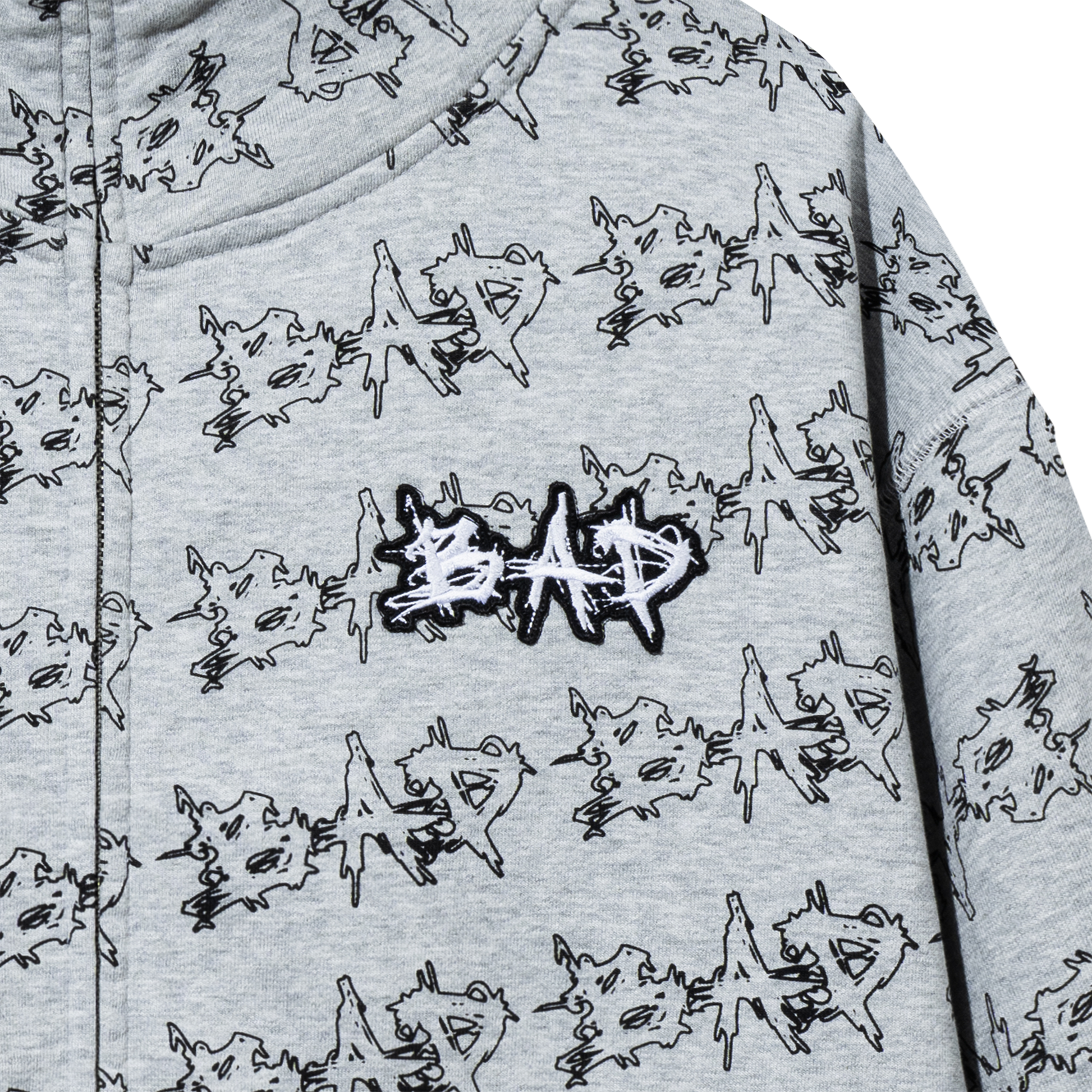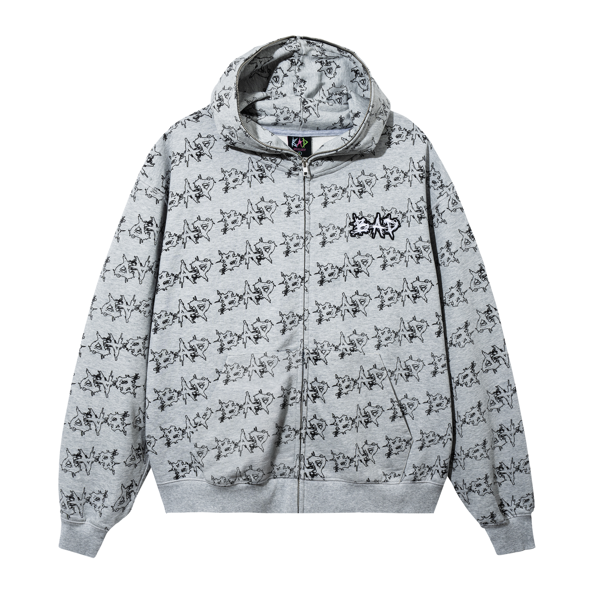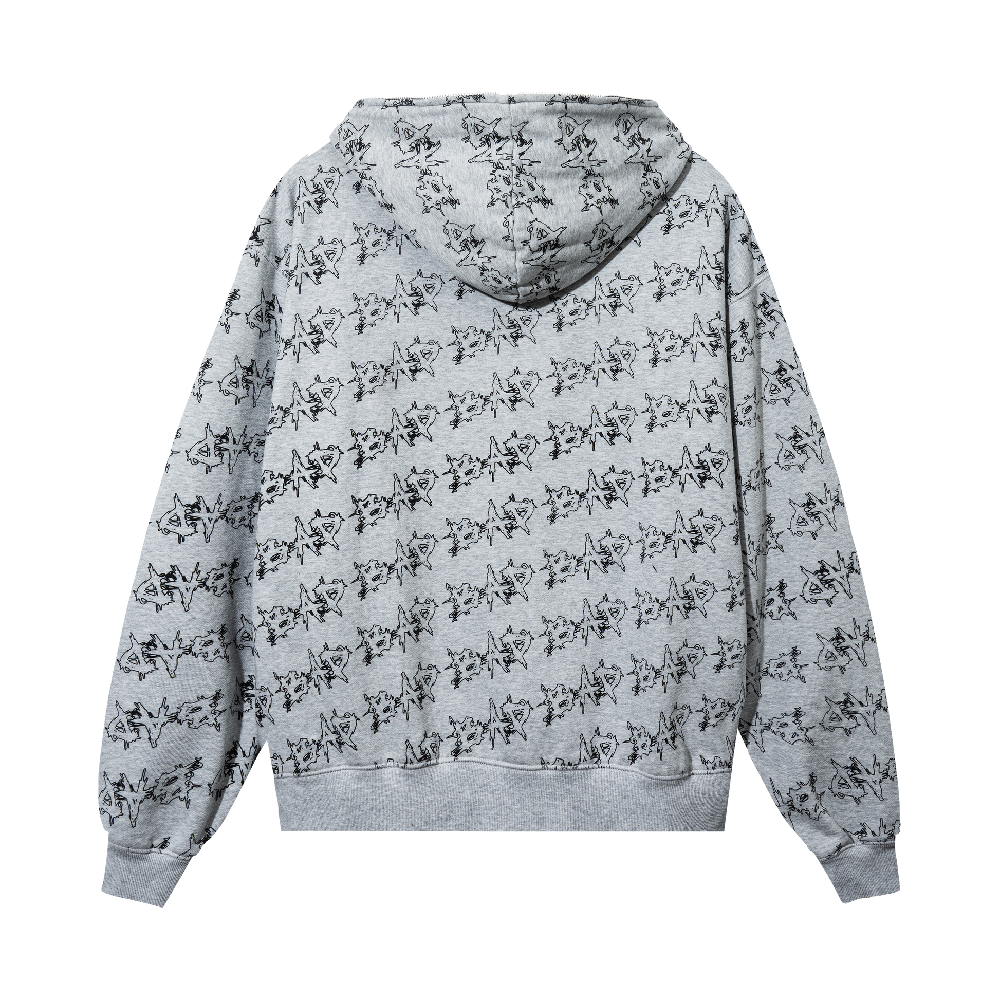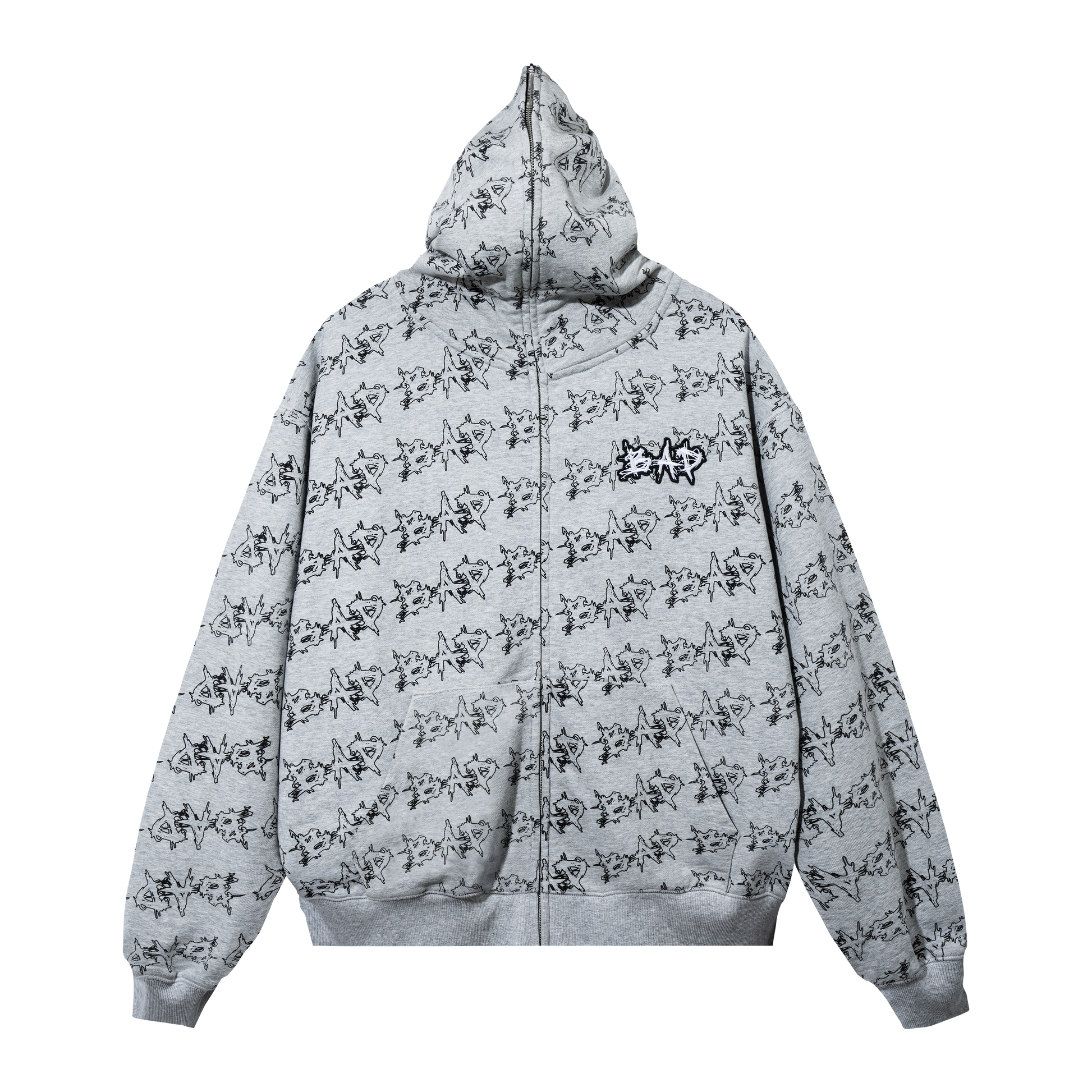 REPEAT LOGO FULL ZIP HOODIE HEATHER GREY/BLACK